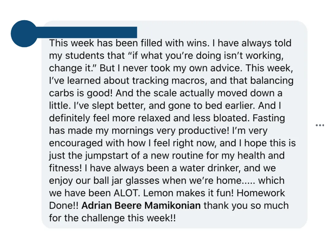 Time to get SUPER accountability! I'll be texting you during this challenge to check in on you! If you have a question at ANY point, then you get a direct response from me!